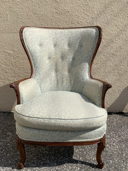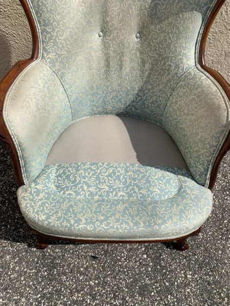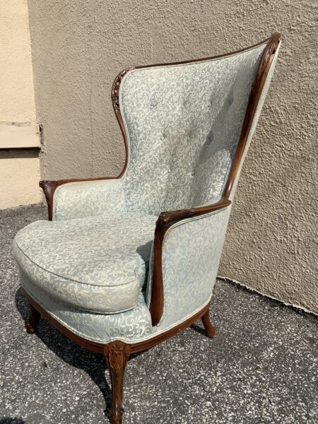 Antique mahogany carved frame wing back chair some light discoloring Price: $140 Location: 7900 Belair Road, Baltimore