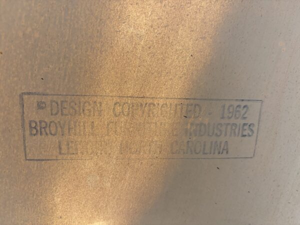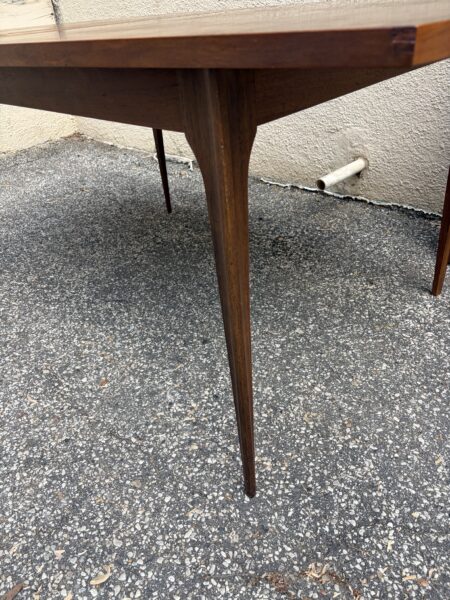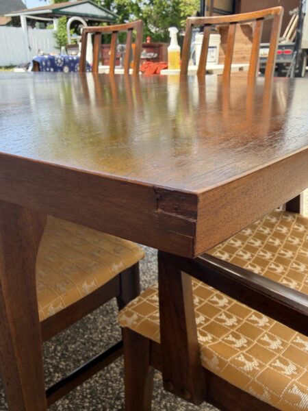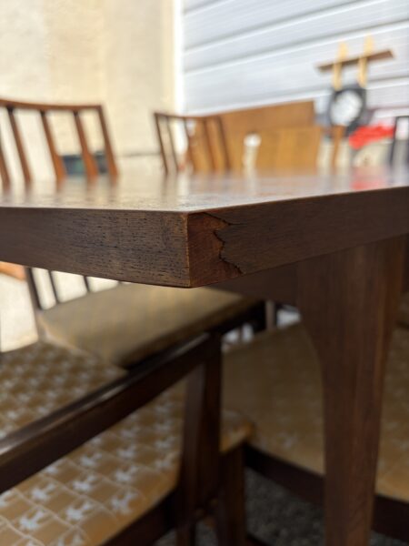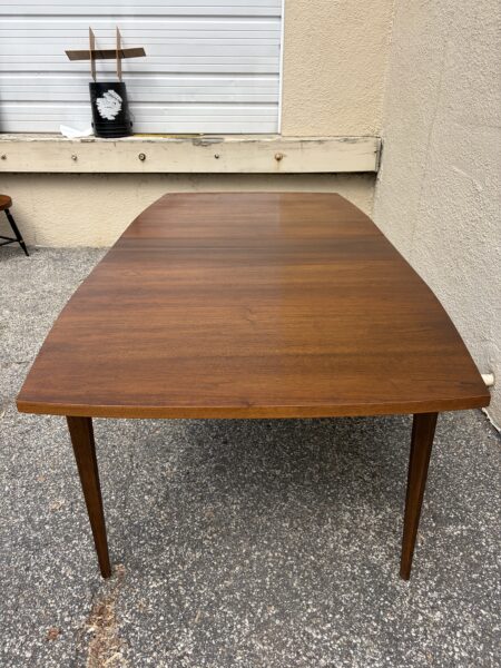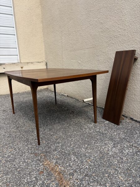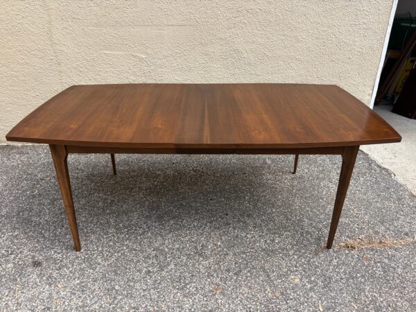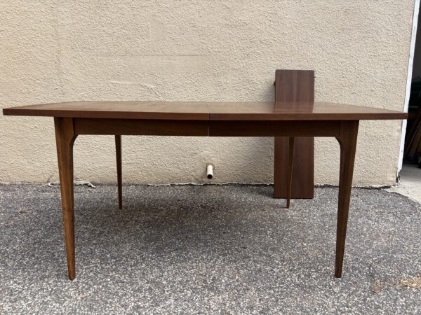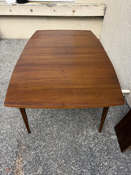 Broyhill “Brasilia” Mid century walnut dining room table with leaf 65″w x 39.5″d x 30″h Leaf 12″ couple small veneer chips on edge banding Price: $695 Location: 7900 Belair Road, Baltimore