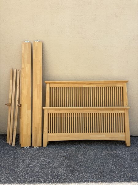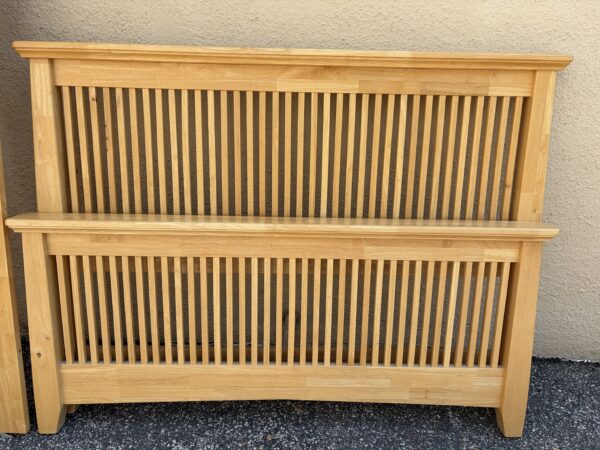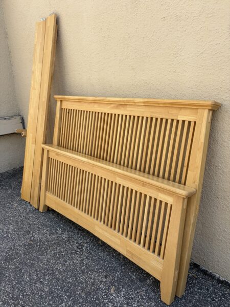 Queen size contemporary mission style bed 67″w x 50″h Price: $295 Location: 7900 Belair Road, Baltimore