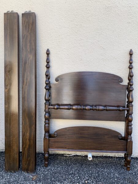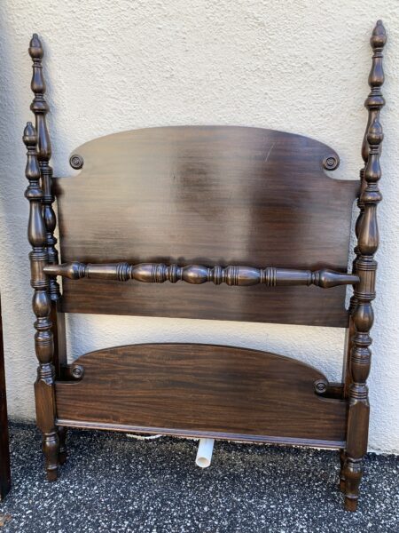 Antique Mahogany Twin Bed , Acorn Finials 42″w x 58″h Price: $175 Location: 7900 Belair Road, Baltimore