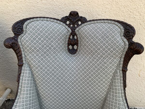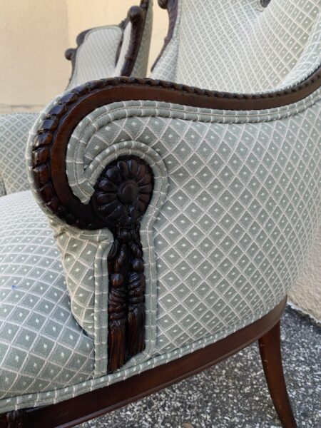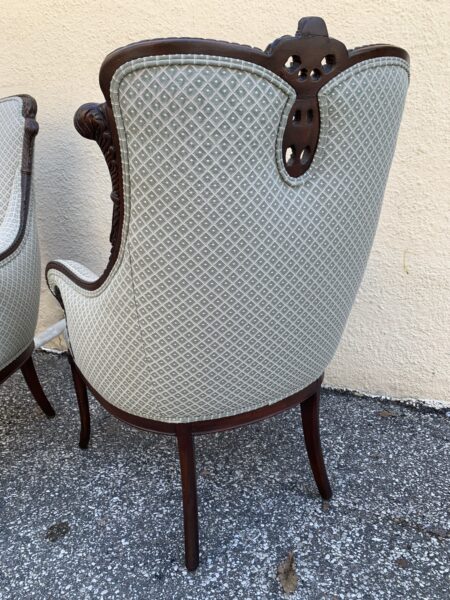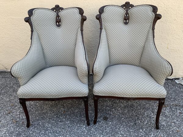 Pair Antique Carved Mahogany Frame Upholstered Chairs 45″h Price: $395 Pair Location: 7900 Belair Road, Baltimore