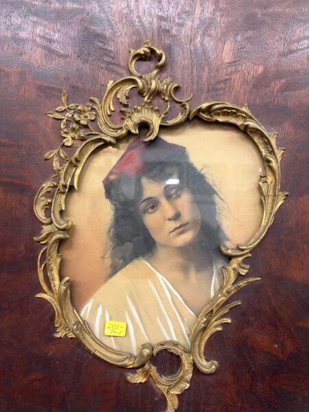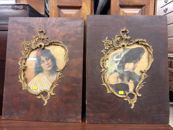 Pair Antique Art Nouveau Original Framed Ladies portraits, Burled Wood & Gesso framed 13.5″w x 17.5″h each Price: $275 Pair Location: 7900 Belair Road, Baltimore