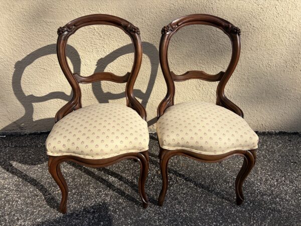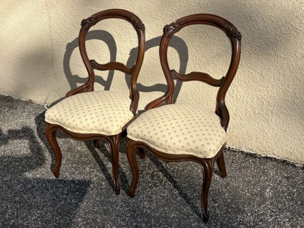 Pair antique 1870’s/80s Victorian balloon back chairs clean and tight Price: $140 pair Location: 7900 Belair Road, Baltimore
