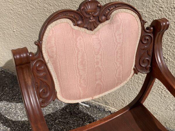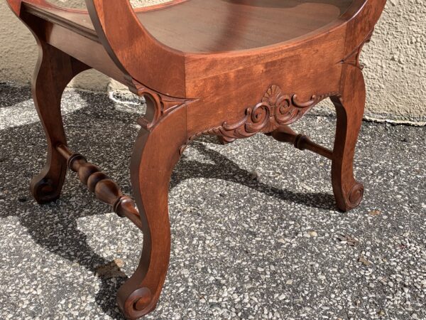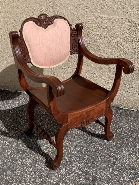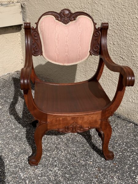 Antique Late Victorian Curved Seat Arm Chair 23.5″w x 24″d x 36’h Price: $195 Location: 7900 Belair Road, Baltimore
