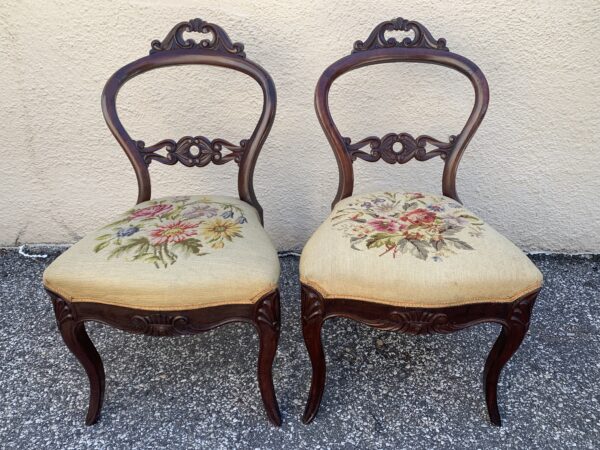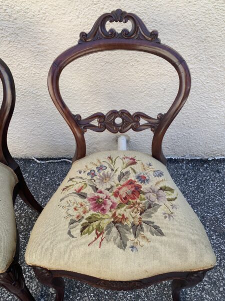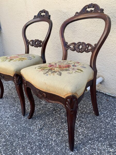 Pair Antique Victorian Balloon Back Parlor Chairs With Needlepoint Seats Price: $125 Pair Location: 7900 Belair Road, Baltimore