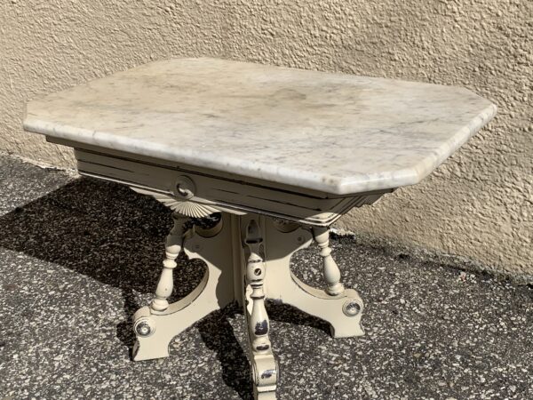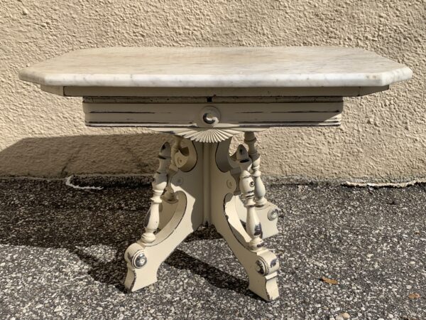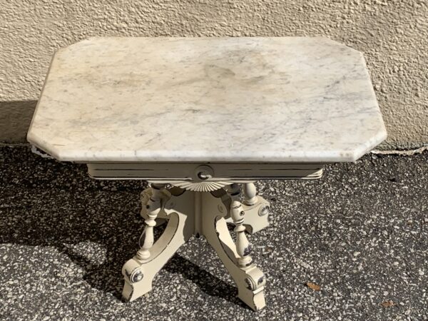Antique Victorian Painted Low Marble Top Parlor Table 27″w x 19″d x 17.5″h Price: $90 Location: 7900 Belair Road, Baltimore