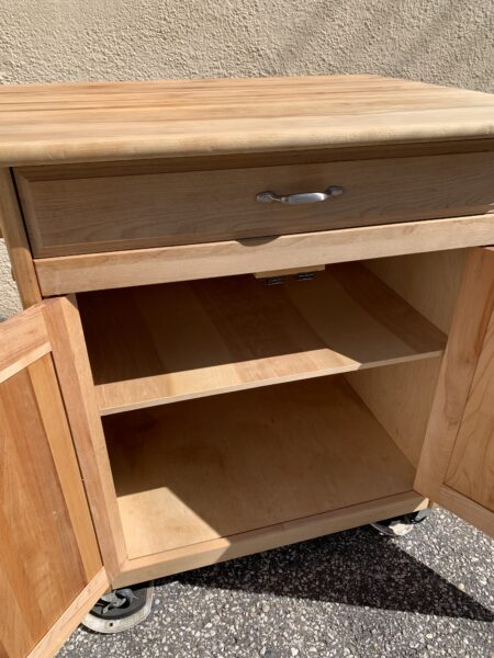 Butcher Block Double Sided Kitchen Island 36″w x 29.5″d x 34.5″h Price: $225 Location: 7900 Belair Road, Baltimore