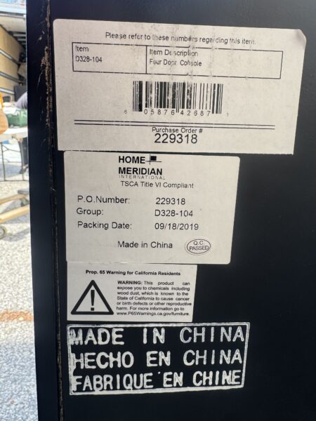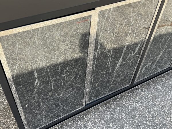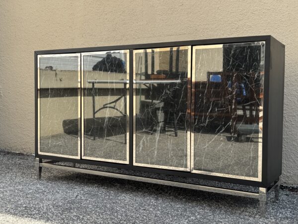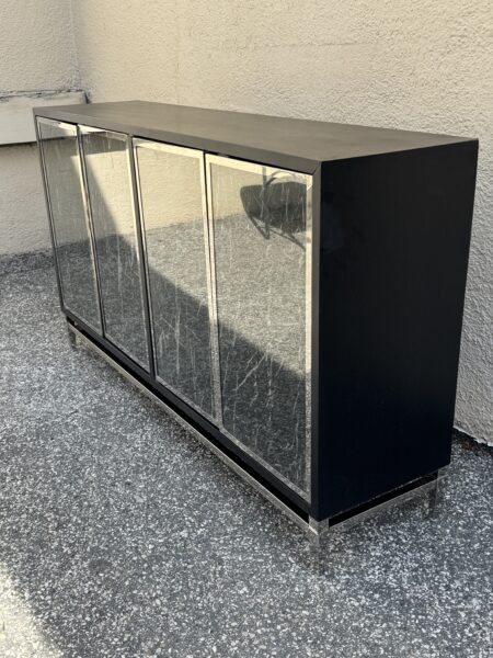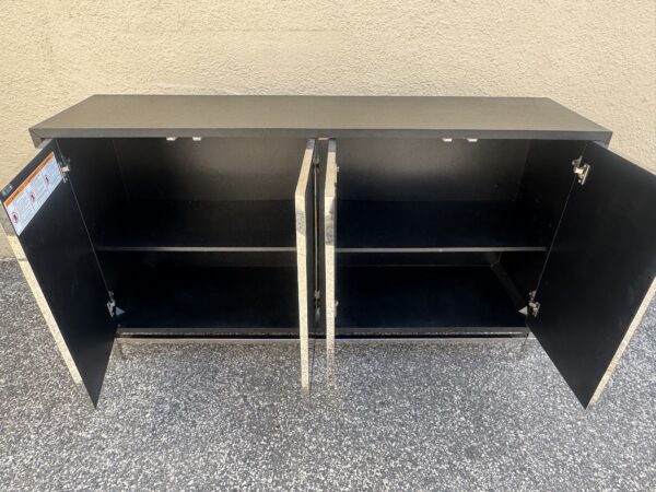 Contemporary Black , Chrome & Marbleized Glass Front Sideboard Credenza 64″w x 16″d x 36.5″h Price: $375 Location: 7900 Belair Road, Baltimore