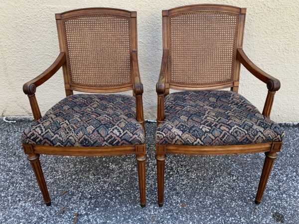 Henredon Pair Italian Provincial Cained Back Arm Chairs Some Finish Wear On Arms Price: $140 Pair Location: 7900 Belair Road, Baltimore