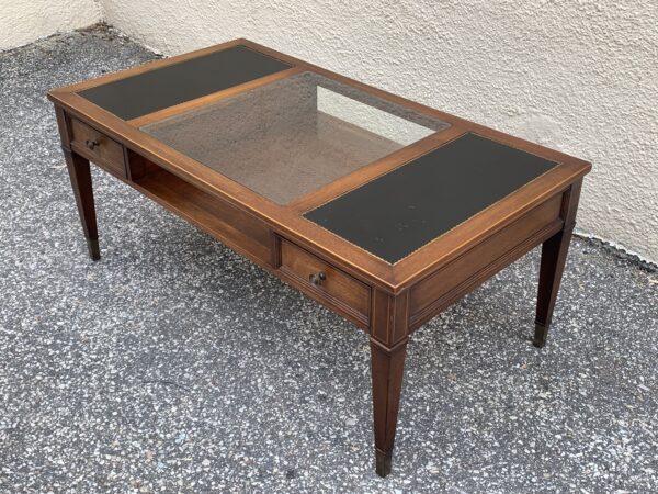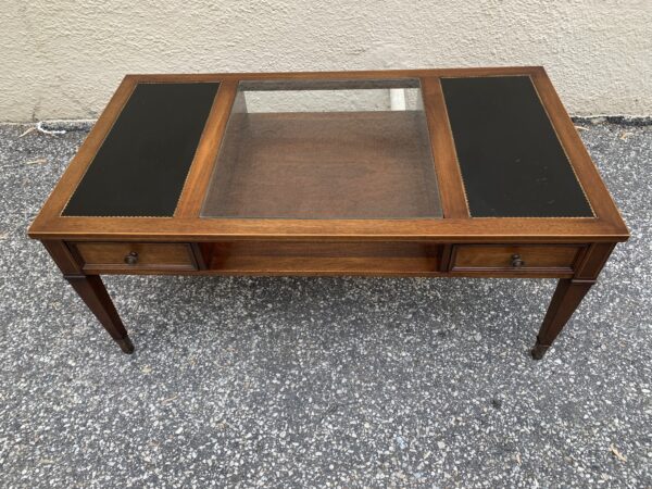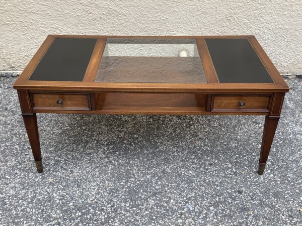 Brandt Mahogany , Leather Top With Glass Insert Coffee Table With Drawers 42″w x 23″d x 18″h Price: $150 Location: 7900 Belair Road, Baltimore