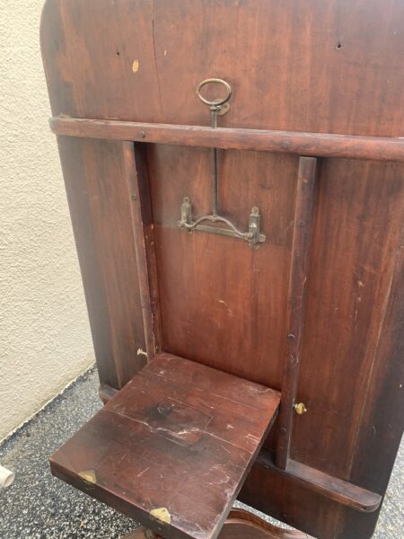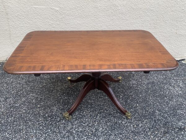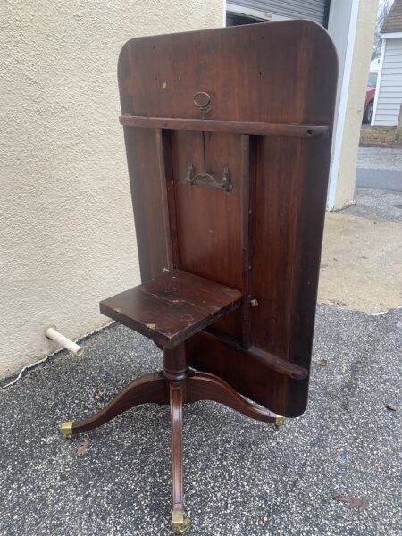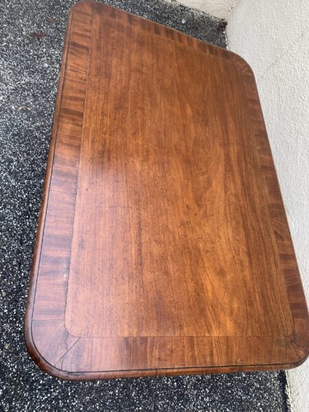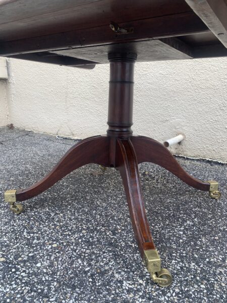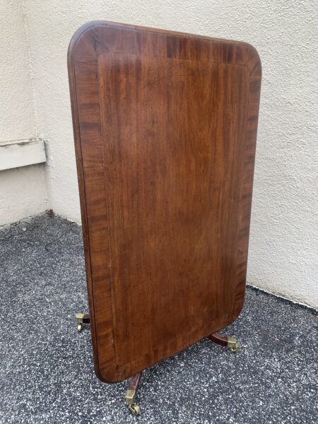 Antique 1800’s English Banded Mahogany Pedestal Tilt Top Breakfast / Dining Room Table Couple Old Repairs On Pedestal 59″w x 38″d x 28.5″h Price: $650 Location: 7900 Belair Road, Baltimore