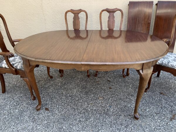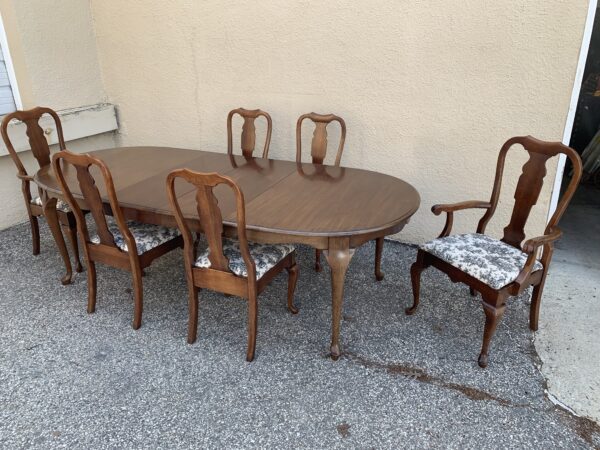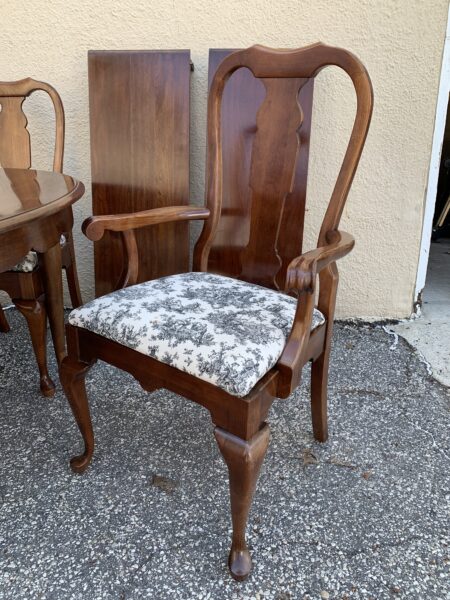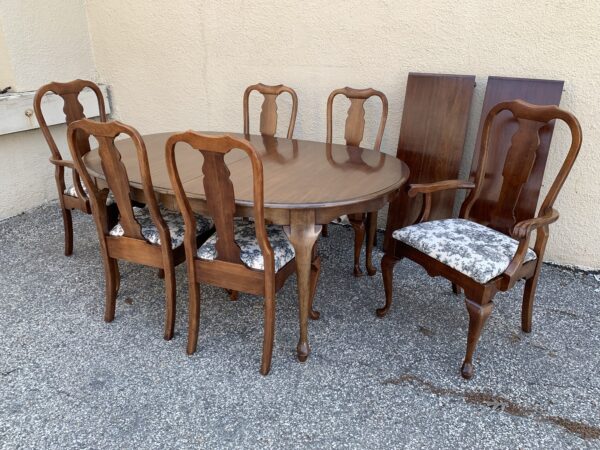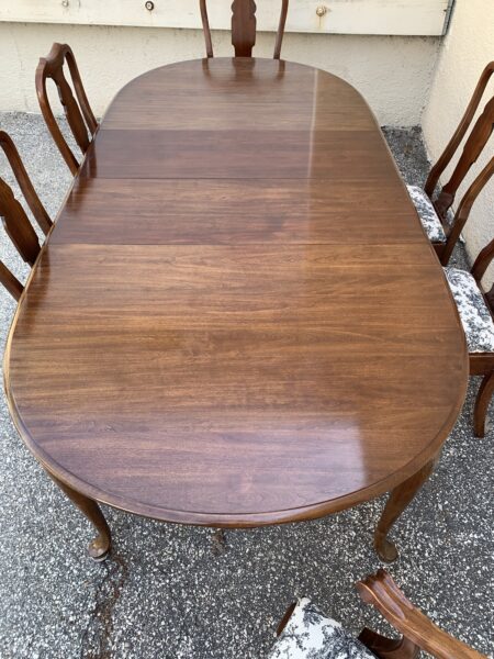 Pennsylvania House – solid cherry queen anne style dining table, 2 leaves, 6 chairs some fading, a couple chairs slightly loose table 66″h x 44″w x 30″h – with (2) 15″ leaves Price: Location: 7900 Belair Road, Baltimore