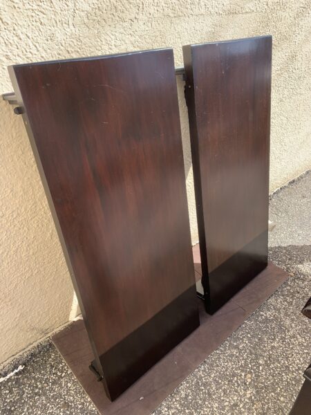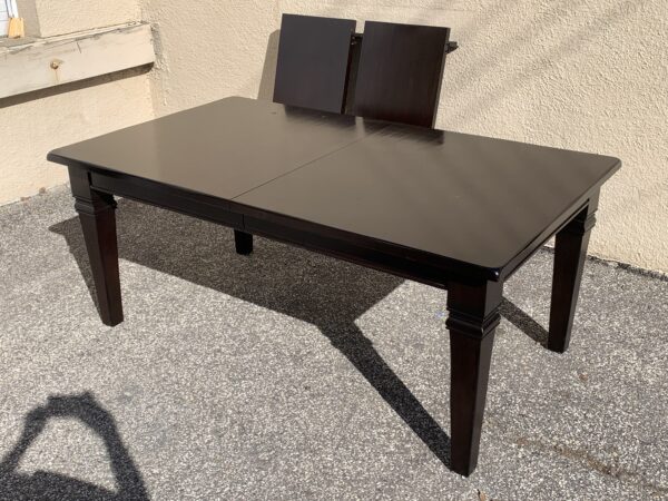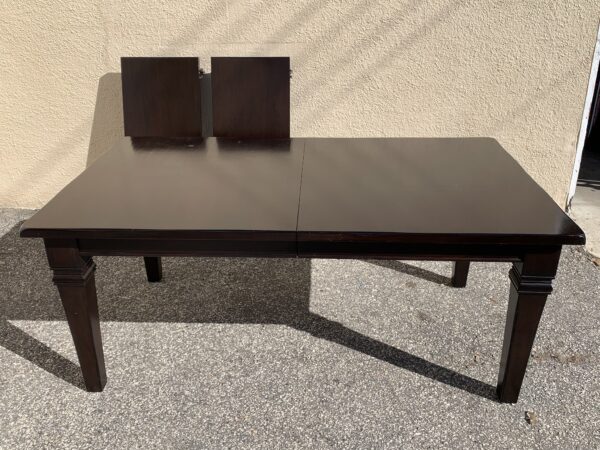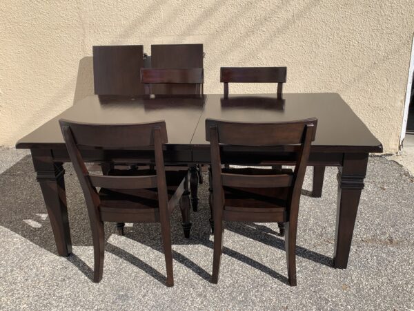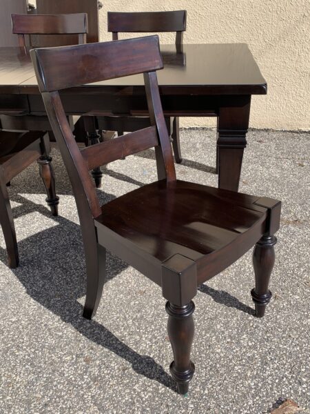Pottery Barn Large Dark Wood Farm Dining Table , 2 Leaves & 4 Matching Chairs 72″w x 42″d x 30″h Leaf (x2) 18″ Price: $650 Set Location: 7900 Belair Road, Baltimore