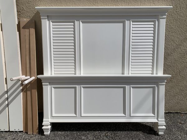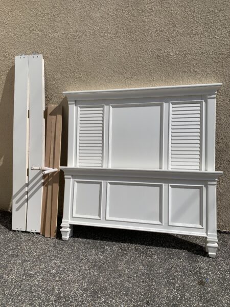 White Shutter Style High Back Queen Bed Likely Pottery Barn 67″ x 65″h Price: $295 Location: 7900 Belair Road, Baltimore