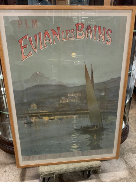 Louis Tauzin PLM Evian Les Bains French Poster Framed 44″ x 32″ Price: $700 Location: 7900 Belair Road, Baltimore
