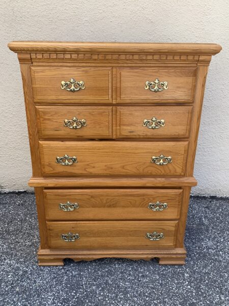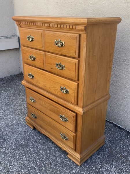 Vaughn Bassett Oak Chest On Chest 38″w x 17″d x 52.5″h Price: $250 Location: 7900 Belair Road, Baltimore